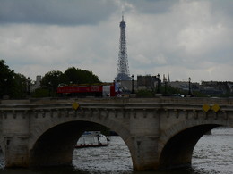 Quando sai do Louvre estava começando a chover. Então, aproveitei para entrar num café ao longo do Sena e tomar uma soupe à l'oignon ( a clássica sopa de cebolas francesa) . Mas antes, tirei esta foto da Pont Neuf com a Torre Eiffel ao fundo. ![{#emotions_dlg.smile} {#emotions_dlg.smile}]()