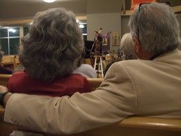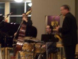 Como não estamos em New Orleans ou Nova York ( onde REALMENTE existe uma cultura de jazz nos Estados Unidos…) , a plateia era toda de gente mais velha . BEM mais velha! Lol ( Uma pena , pois já se vê que quando esse povo bater as botas, o jazz vai sumir de vez dos palcos das cidades americanas…) Pra se ter uma ideia, meu marido e eu éramos os bebés alí !! E ele já passou dos cinquenta e hoje completo 45! ( E não, não sou do tipo que fica deprimida ou ‘destruída’ no dia do seu próprio aniversário. Ao contrário, eu aproveito o jantar, os presentes e sempre penso que , fazer anos é sempre MUITO melhor do que a alternativa – que no caso seria estar debaixo da terra se decompondo!! )
