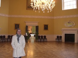 A autora do 'Parada' , em um dos salões dos Assembly Rooms - local onde na época de J.A. as pessoas se reuniam para jogar cartas, tomar chá e dançar. Aqui, o ballroom (salão de danças...)
