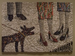 O primeiro é de um americano; o segundo (com o cachorro) , feito com pedaços de jornais, é de um artista dinamarquês.