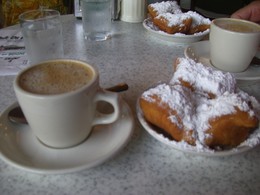 Uma parada à tarde no famoso Café du Monde é um must! Alí se toma o café com chicória (parece esquisito,, mas é uma delícia!) , típico de N.O. e se come os seus deliciosos donuts - os beignets! Tudo, naturalmente, ao som de jazz...![]()