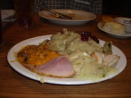 e em dias normais , além das tapas, há tambem música flamenca, ao vivo . Contudo, na noite de Thanksgiving ( pois afinal isto aqui é a América e este é o feriado mais importante para muitos Americanos, até mais do que o Natal!) não houve show e sim um menu especial para a ocasião : tapas de peru com o típico molho de cranberries, purê de batatas , vagem com amêndoas e nozes tostadas. Yummy! Imagino que em dias normais a comida original ( espanhola) ali deva ser muito boa!